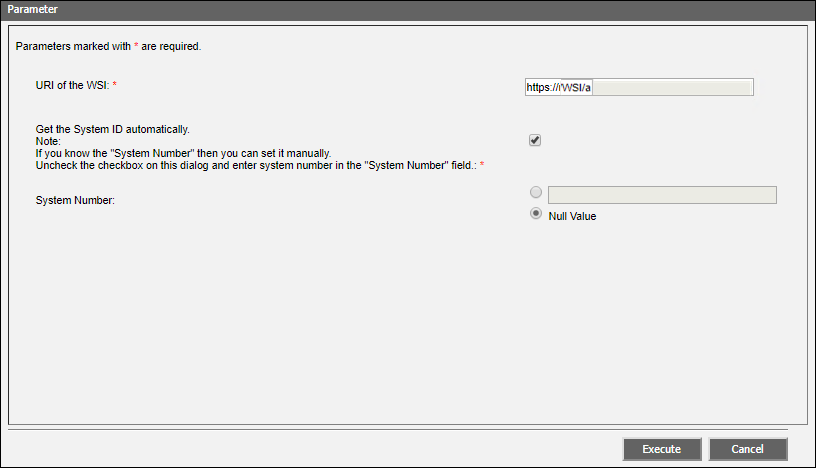 - Uncheck the Get the System ID automatically checkbox and then type the System ID of the system to which the Web Services belongs in the System Number field and click Execute.
