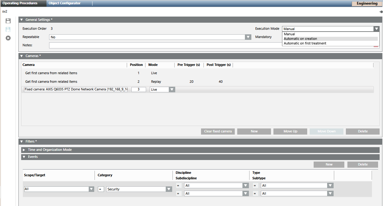 The filters define what events and situations will cause this operating procedure to start. For more information, search for “Filters of an Operating Procedure”.