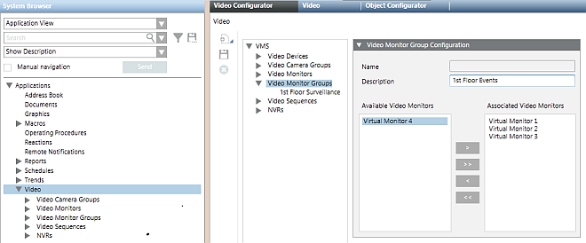- The new monitor group is also added under Applications > Video > Video Monitor Groups in System Browser.