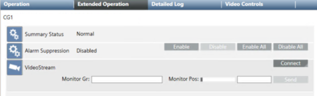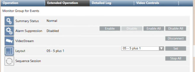 When you select a camera group in System Browser properties and commands for that camera group display in the Operation and Extended Operation tabs.