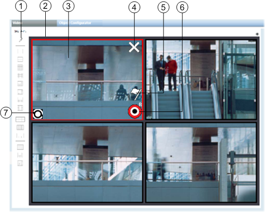 1 | Video Command Toolbar | Displays the command icons that allow you to control the video display and select the layout. |