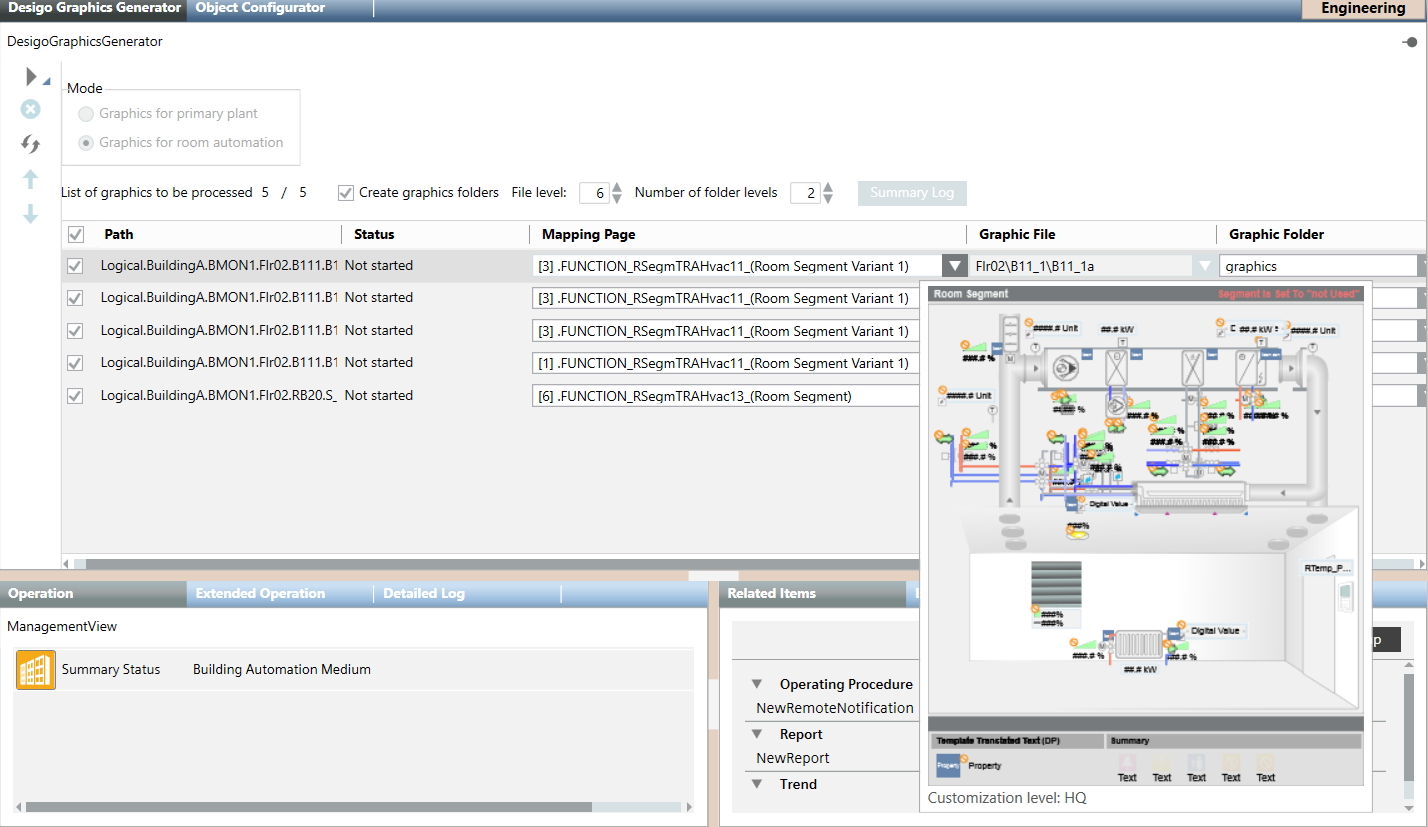 Drag the appropriate object folder to the Desigo Graphics Generator tab.
