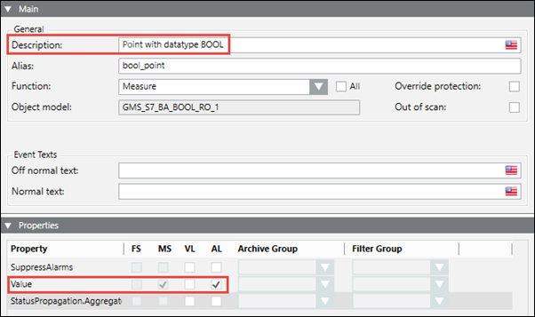 ObjectModel | Object Model of the point. You do not need to specify a value in this field, if you are importing S7 points using Native Object Models. However, if you are importing S7 points using N to 1 mapping, you must specify the value of the object model and property. Before specifying a name you must ensure that an object model is defined in the system. For information on creating object models, see Create Object Models. |