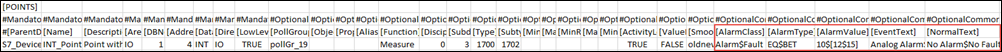 - If there are any point entries present without the parent entry of the device, then those point entries are ignored.