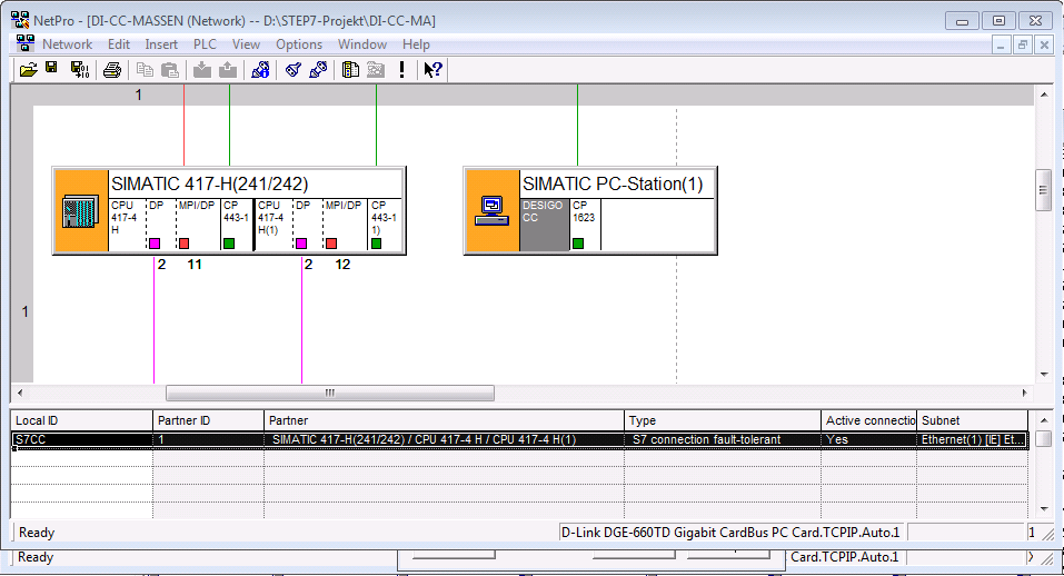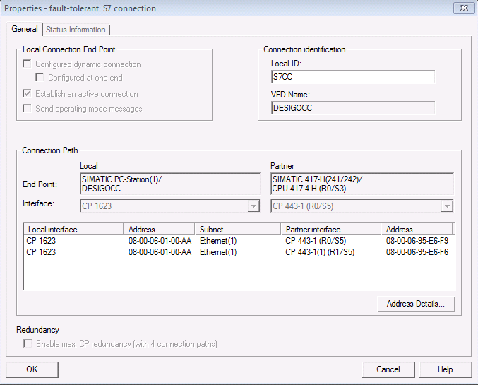 NOTE: The state of the fault-tolerant connection can be checked on the SIMATIC PC-Station under S7 Connection Diagnostics.