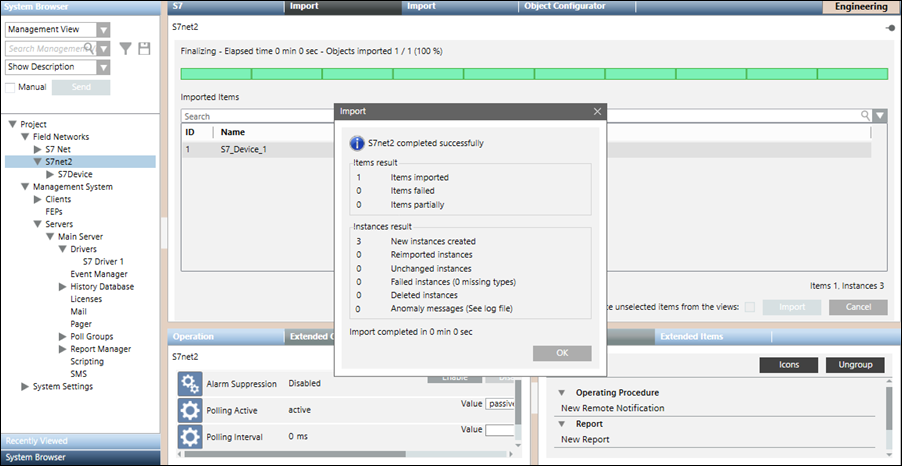 - The new S7 driver object appears in the System Browser below the Drivers node.