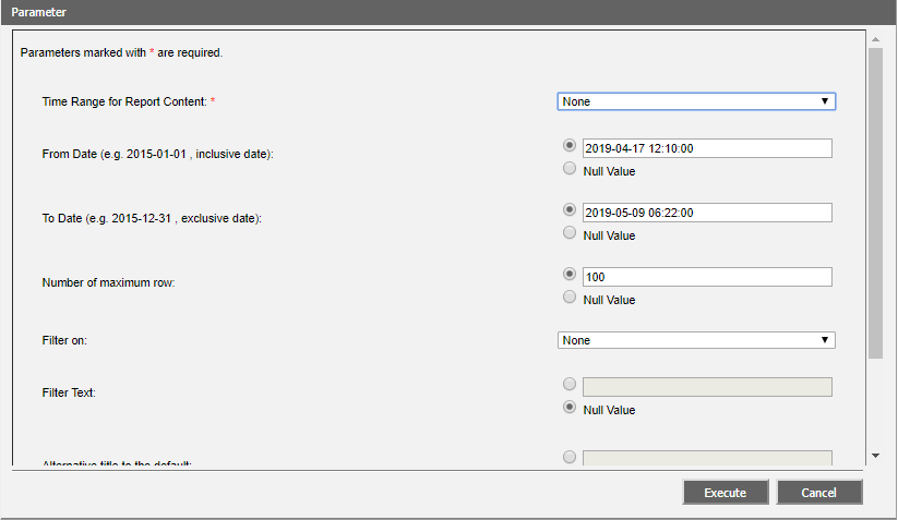 In the Maximum number of lines field, the number of report lines to be created or select option No value (= all lines).