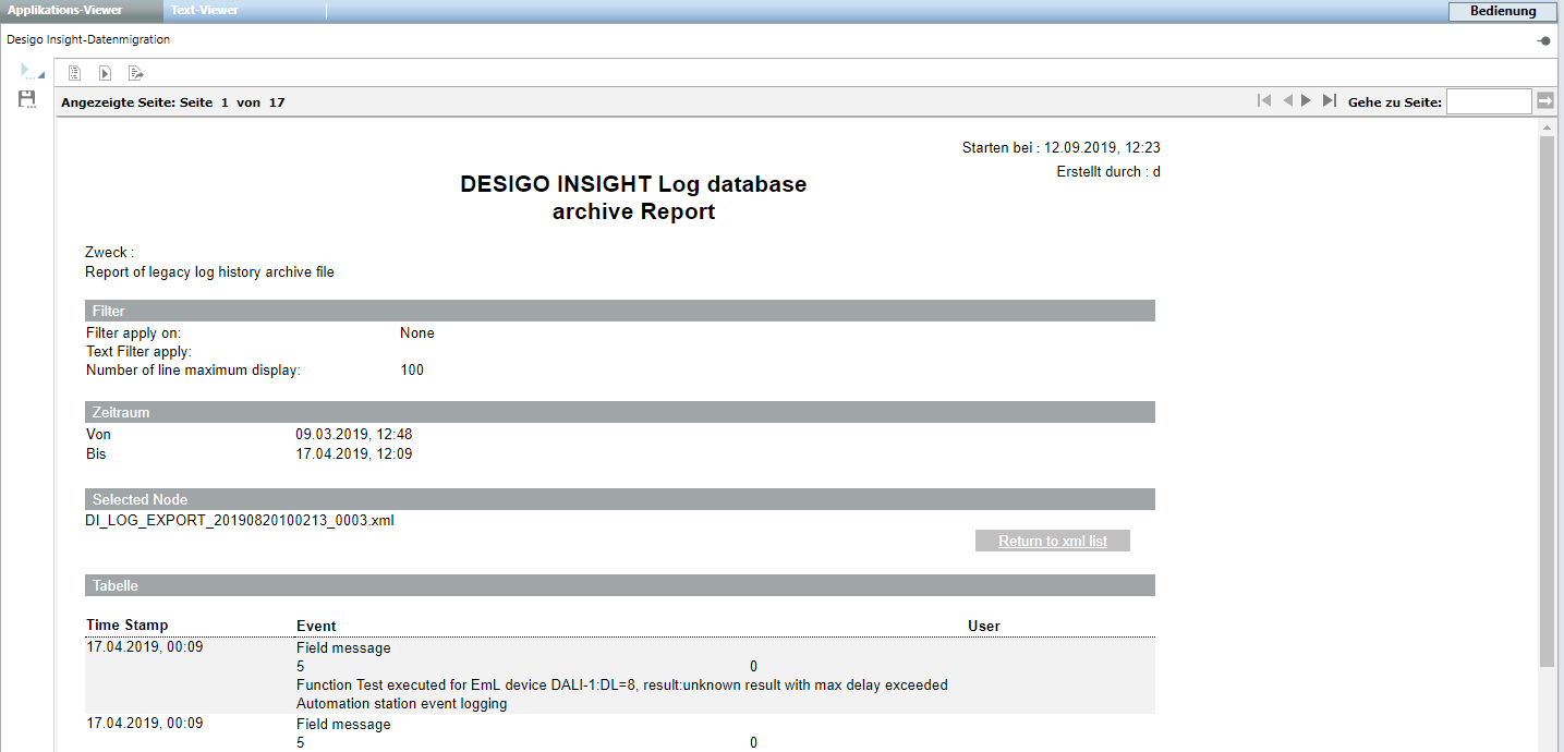 In the drop-down list Time range for report content, selection option None (default setting for Desigo Insight Migration).