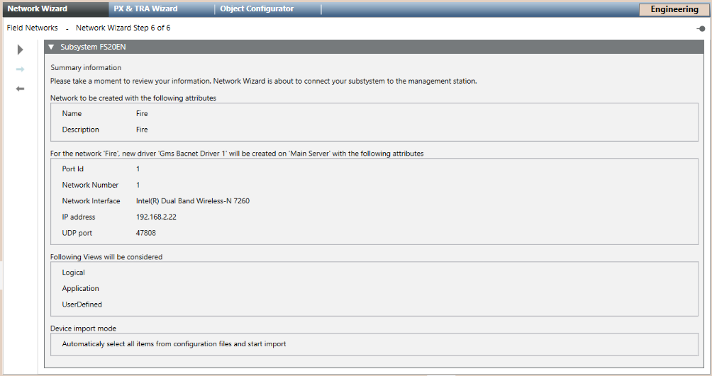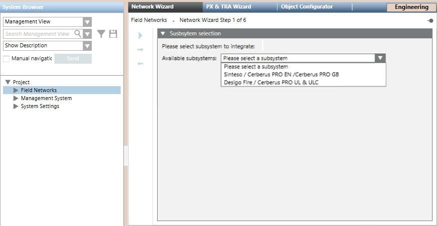 Scenario: You want to create a new BACnet fire network for FS720 Cerberus Pro. This wizard provides a quick procedure that simplifies the general configuration workflow.