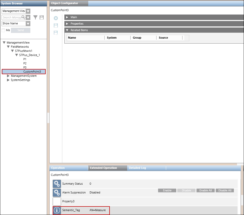 The Importer parses the CSV file row by row and imports the data in that row if it does not have any of the above mentioned error conditions. On successful import, the objects are created below the S7 PLUS network node in the System Browser.
