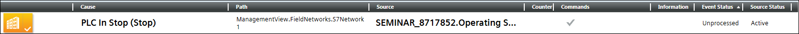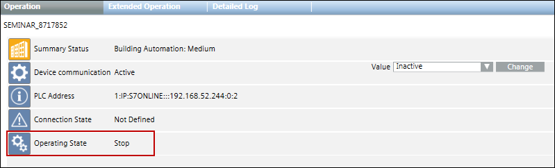 Whenever the device goes into the Stop state (0) an alarm is raised on the management station. This indicates that the device is not operational. When the state of the device changes, you can acknowledge the alarm.