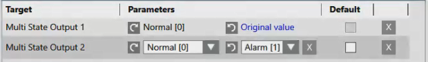 - The parameters automatically change for each previously stored target object. Each newly stored object has the default value.