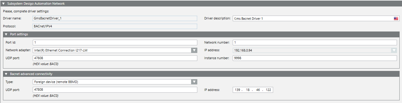 Check the settings for Port properties > Foreign device. The IP Address must reference the BBMD device on the network.