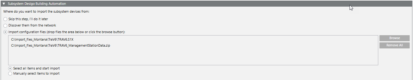 You selected a project with Desigo Automation import data. Otherwise skip this step.